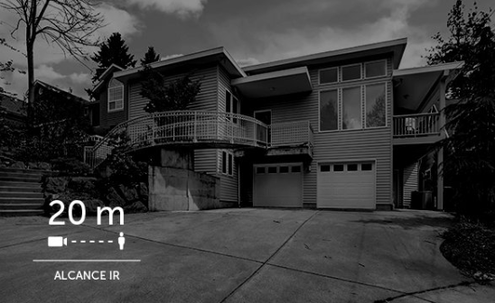 Com o infravermelho, a câmera alcança uma distância de até 20 metros no escuro, podendo ser utilizada em ambientes com pouca ou nenhuma luminosidade.