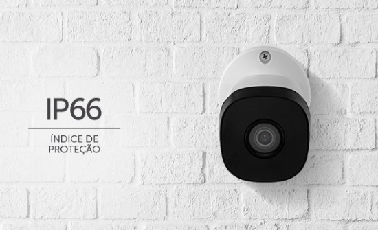 A câmera possui um circuito adicional de proteção contra surto de tensão, case plástico com proteção anti-UV e IP66.