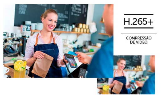 A compressão de vídeo H.265+ permite a visualização das imagens em alta resolução, sem gerar alto fluxo de dados na rede e otimizando o espaço no HD.