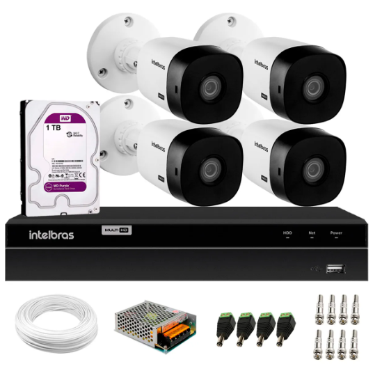 Esse kit contempla produtos de alta qualidade, com câmeras e DVR da marca Intelbras. O kit intelbras vem completo, pronto para realizar a instalação. Conta com imagens de alta definição de 1 megapixel, 720p com infravermelho filmando no escuro.