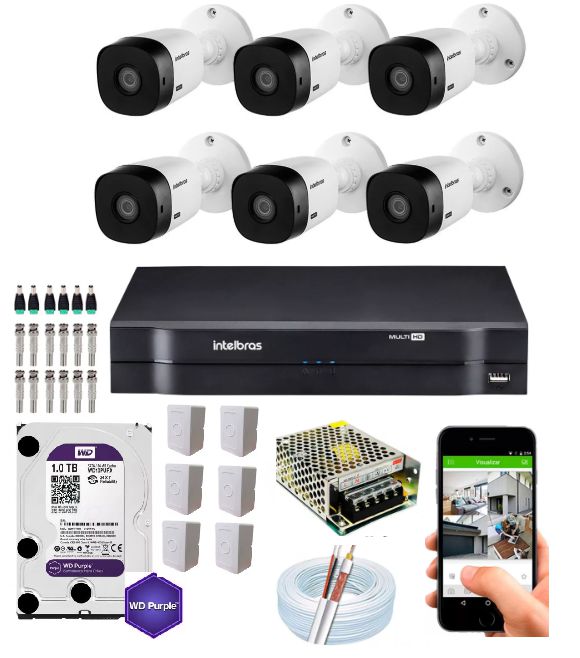 Esse kit contempla produtos de alta qualidade, com câmeras e DVR da marca Intelbras. O kit intelbras vem completo, pronto para realizar a instalação. Conta com imagens de alta definição de 1 megapixel, 720p com infravermelho filmando no escuro.