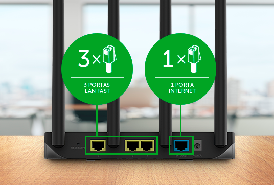 Ideal para planos de internet de até 100* mega, conta com 4 portas Fast (até 100Mbps), entregando também conexões cabeadas de alta qualidade.