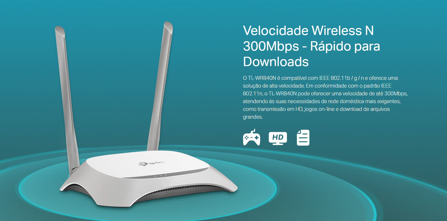 Taxa de transmissão sem fio de 300 Mbps, ideal para tarefas sensíveis à largura de banda e trabalho básico