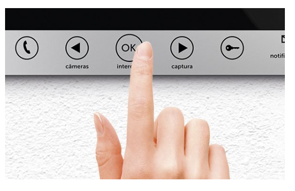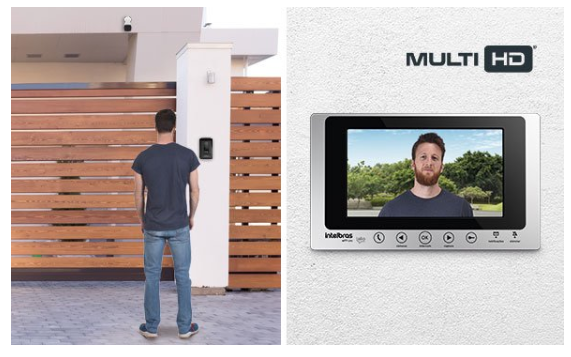 Atenda, visualize e abra portões pelos botões touch do display de 7" ou remotamente pelo app Allo Plus.